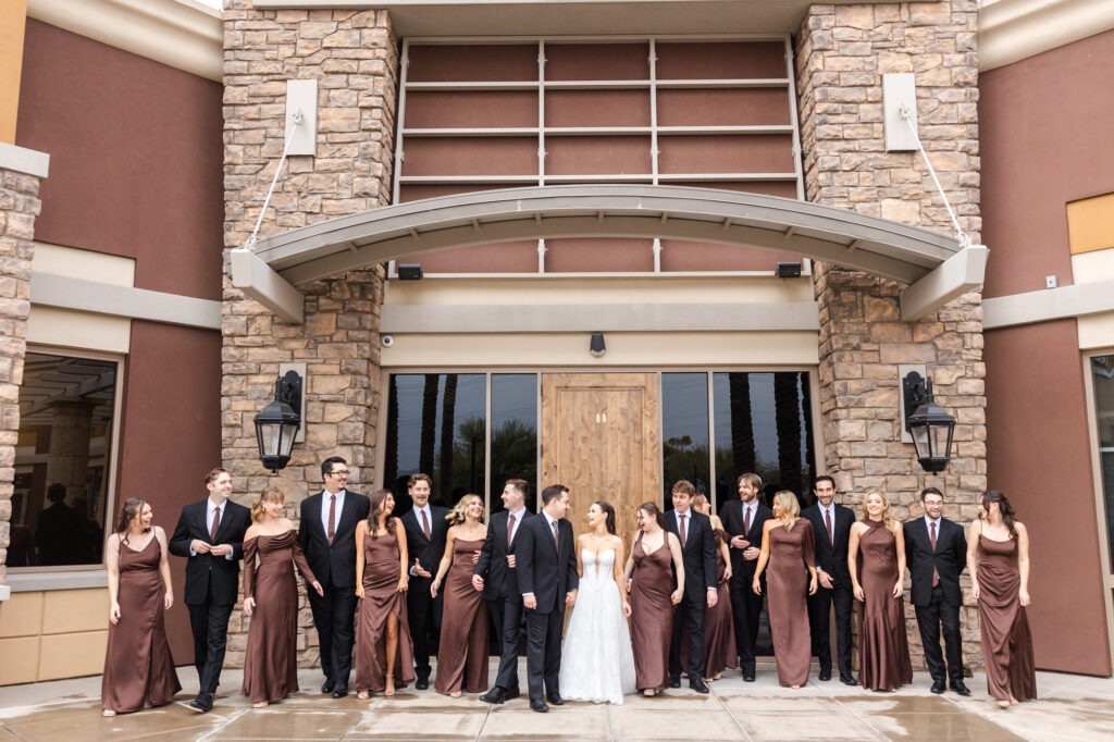 Then came the reception, and wow — this is where they truly amazed their guests. Hannah and Jack wanted the reception to be the big “wow” moment, and they nailed it. The groomsmen wore classic black, while the bridesmaids wore chocolate brown satin dresses that felt modern, elegant, and perfectly on trend. The contrast looked incredible and tied the whole day together beautifully.